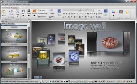 Aurora 3D Presentation is a software that provides a powerful technique that you can use to develop such an impressive, professional presentations, and effective in a number of formats. By using 3D Presentation, you will be able to produce a solution to combine images, text, video, and data in ways that will capture all the attention of your audience. Even if you're not very creative, easy to get started with 3D Presentation, thanks to the included templates and unique style. You can create interactive menus that automatically launch slideshows, websites, program execution or a wall of images and information, arranged in a circle or arc animation that gracefully curved around the viewer. By importing a CSV file into a 3D Presentation and animates charts and graphs of data, or create animations and graphics, even 3D models.